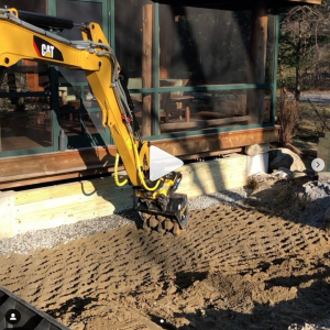 Felco 24” wide Mini EX Tamping Pad Wheel Compactor on a CAT 305.5E2 CR Mini Excavator with an Engcon Tiltrotator Coupler